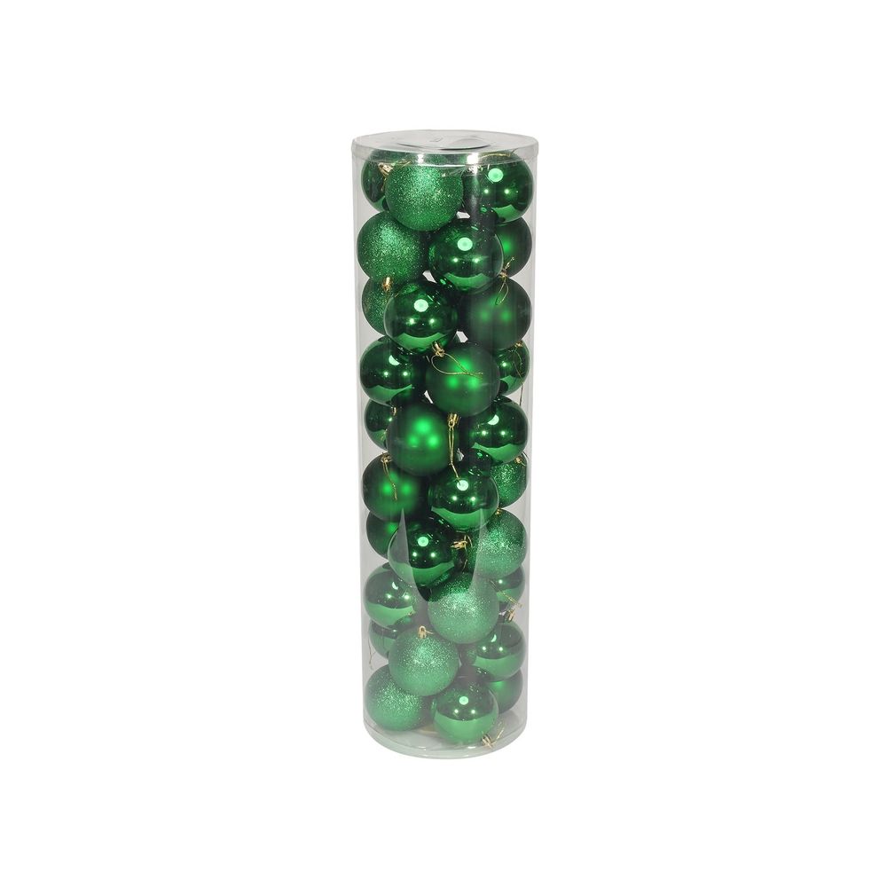 48 Holiday Green Baubles in Matt, Shiny & Glitter Finish (8cm)