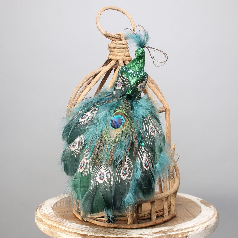 A stunning peacock bird with clip decoration or craft accessory. This bird will stand out for all the right reasons, with it's bold blue and green shades.
