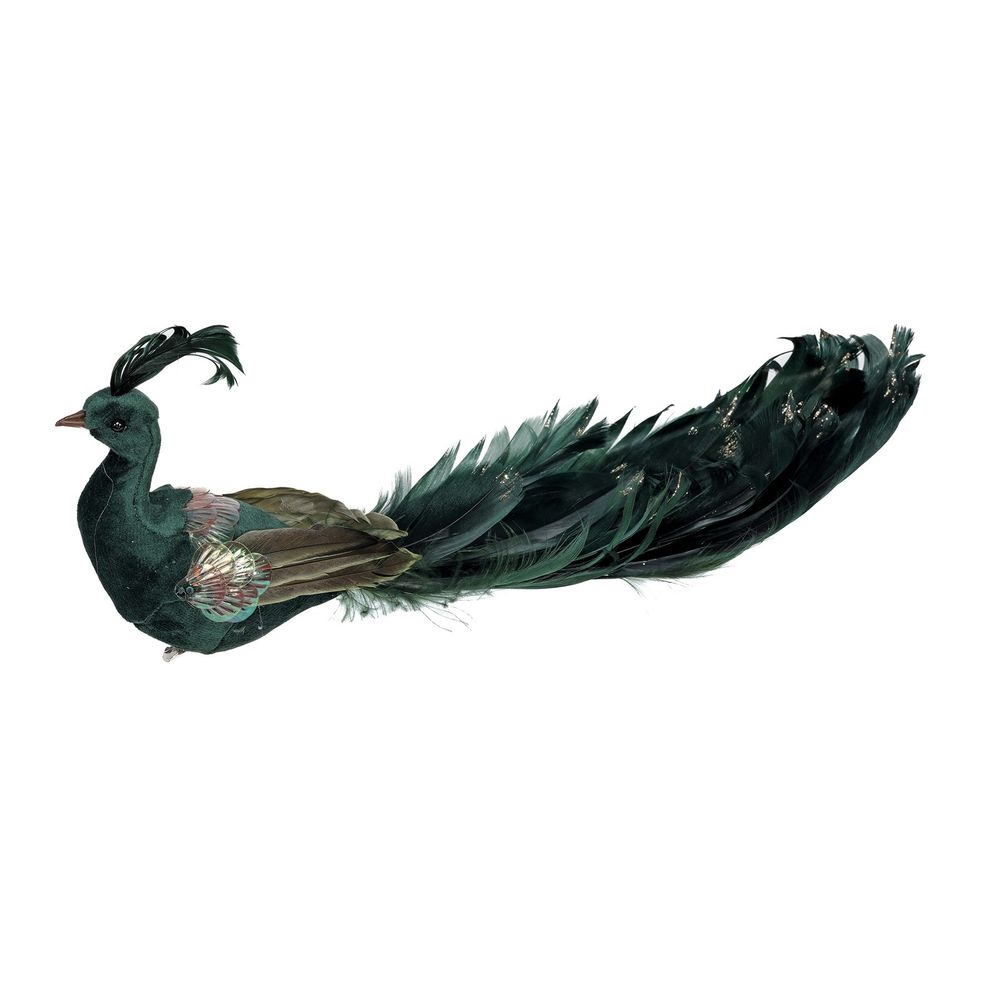Experience the awe and grandeur of Christmas with the stunning Green Velvet Peacock. Perfectly sized at 26 cm, this little peacock is ideal for adding a touch of glamour to your festive decorations. Adorning your Christmas tree or mantlepiece, it will bring a playful and regal atmosphere to your home.