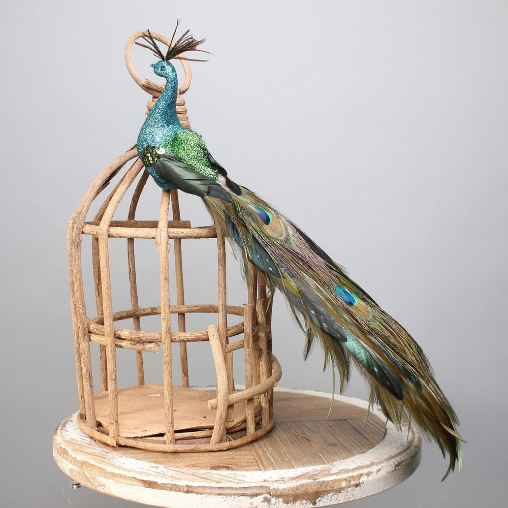 A stunning peacock bird with clip decoration or craft accessory. This bird will stand out for all the right reasons, with it's bold blue and green shades.