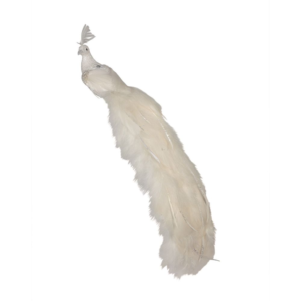 White Peacock with White Glitter Feather and Clip (60cm)