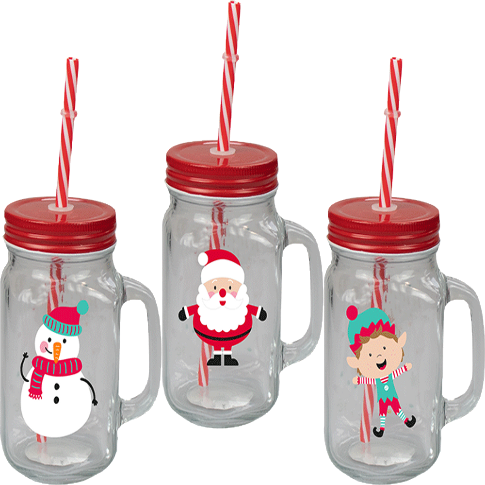 Make Christmas drinks extra magical with our Christmas Mason Jar & Straw! Each jar comes with a bright red lid, a candy-striped straw, and a fun festive character - choose from Santa, a Snowman, or a cheeky Elf.