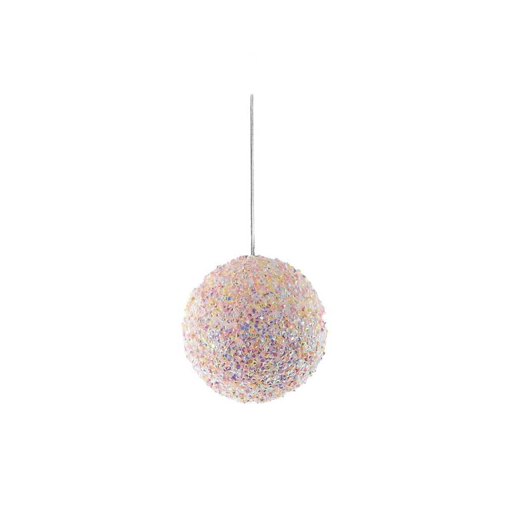 This ornament is perfect for creating a dazzling focal point on your Christmas tree or as part of a sophisticated centrepiece. Its soft pink pastel hue, subtly shimmering with sparkle, captures the magic of the winter season, evoking a sense of nostalgia and joy.