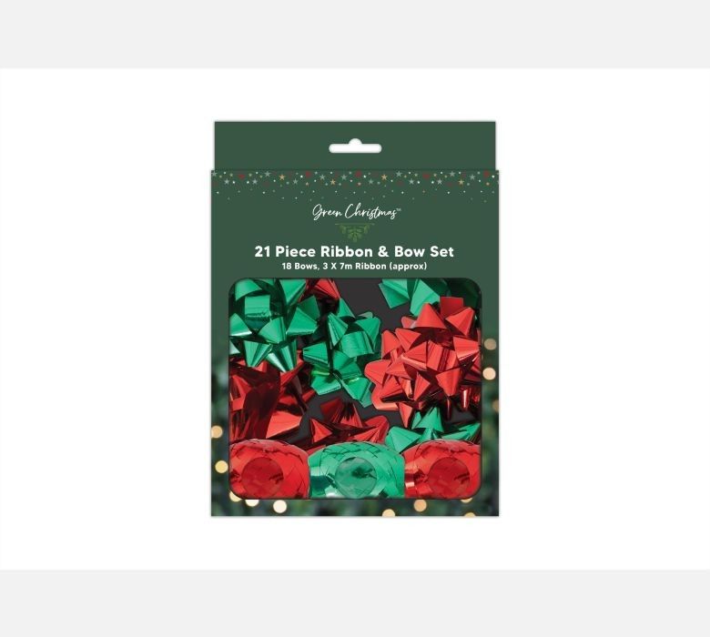 Red & Green Foil Ribbon Bow Set (Pack of 21)