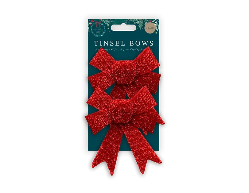 Add a touch of festive cheer to your holiday decor with this exquisite pack of two Red Tinsel Bows.