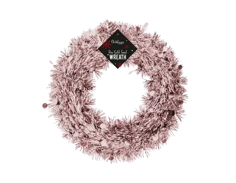 Rose Gold Tinsel Christmas Wreath (28cm)