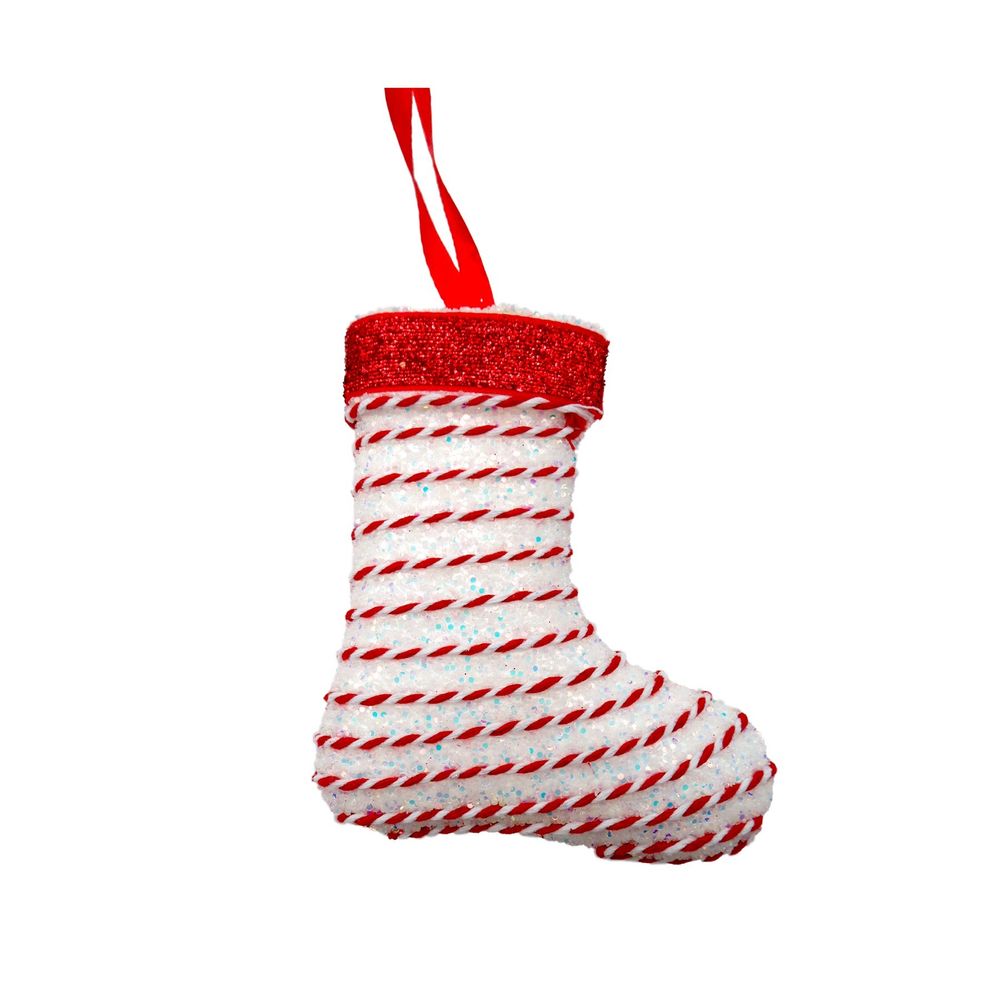 White & Red Glitter Sequin Stocking Hanging Decoration (11cm)