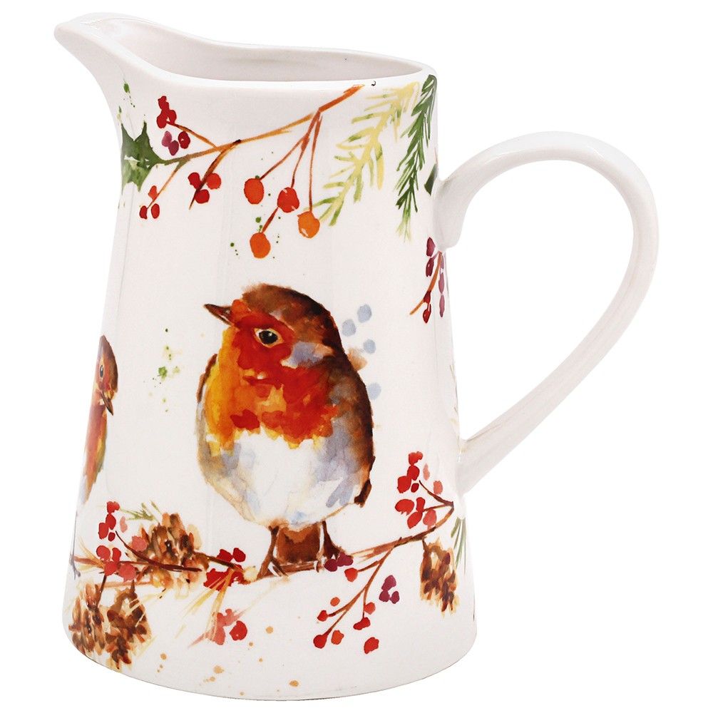 Featuring a beautifully illustrated robin surrounded by delicate winter foliage and berries, this jug is perfect for serving milk, cream, sauces, or even as a decorative piece filled with flowers. Its smooth, sturdy handle and elegant shape make it both practical and stylish. A wonderful addition to your seasonal kitchenware and a thoughtful gift for bird lovers.