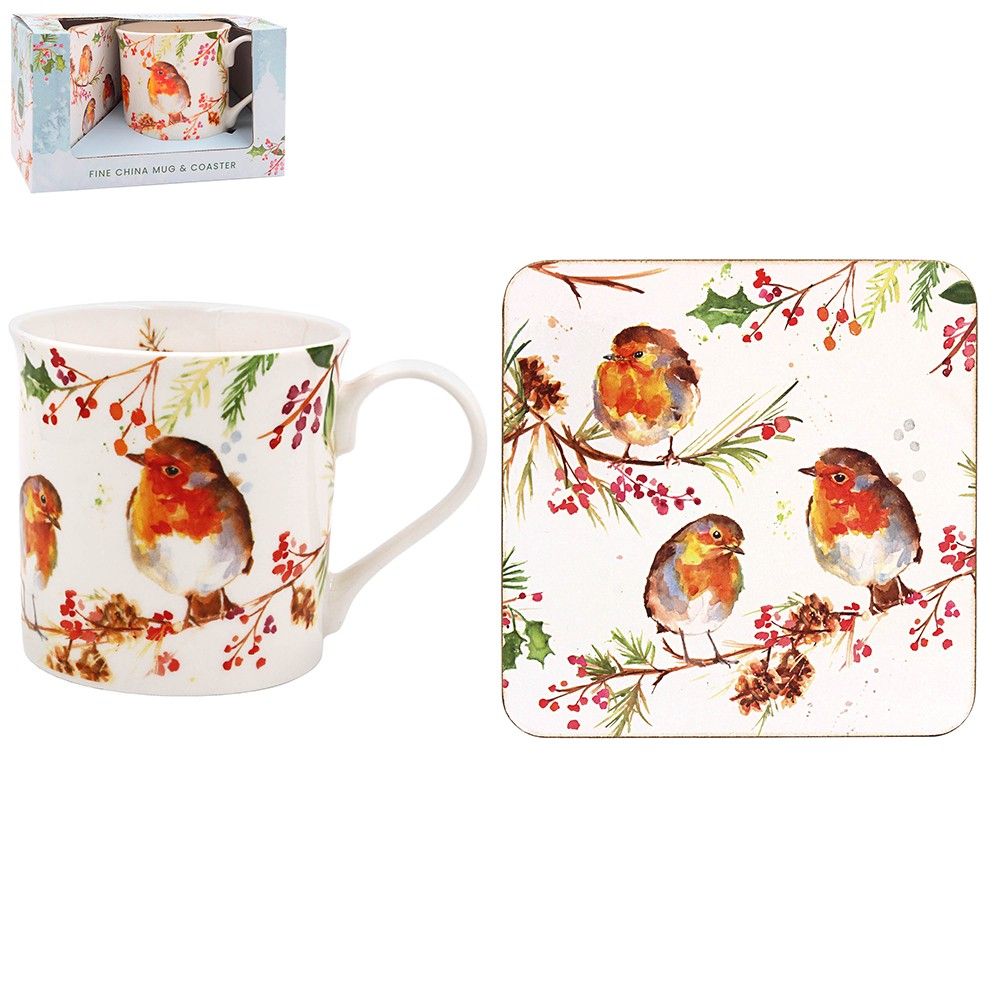 Featuring a beautifully painted robin design with delicate winter foliage, this set brings the beauty of nature indoors. The mug is lightweight yet durable, perfect for your morning brew, while the coaster protects your surfaces in style.