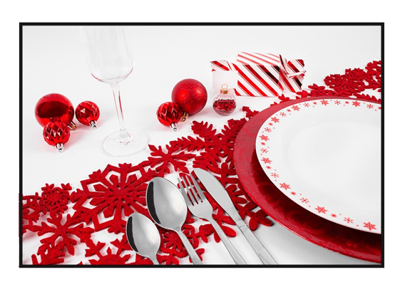 Made from felt and featuring a cut out snowflake design this red glitter table runner will make the perfect addition to any Christmas table.