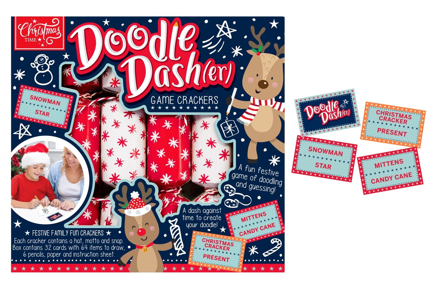 Designed to bring a bit of creativity to any table setting this Christmas, this Pack of 6 Doodle Dasher Crackers is sure to help liven up any home environment in style.