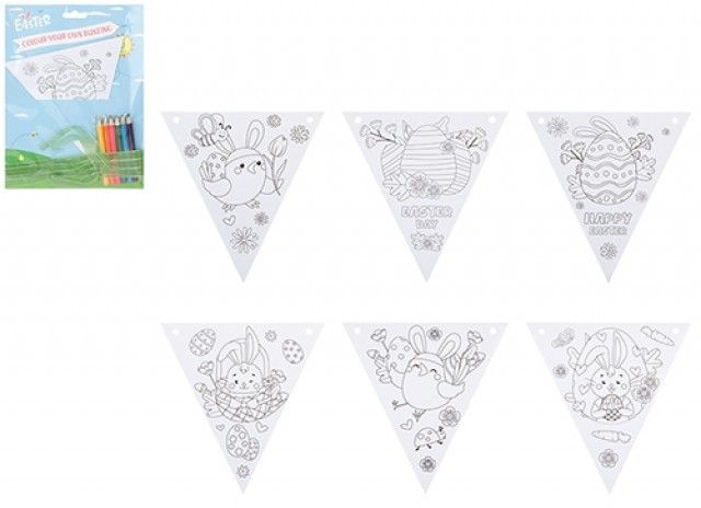 Get creative this Easter with the Create Your Own Easter Bunting set! This fun and festive kit includes six colouring pencils and a ribbon, allowing you to design and personalize your own decorative bunting. Featuring Easter-themed shapes, such as bunnies, eggs, and chicks, it’s perfect for kids and adults to enjoy a crafty holiday activity. Simply colour, string them together with the included ribbon, and hang them up to add a personal touch to your Easter celebrations. A fantastic way to spark creativity and bring festive charm to your home, parties, or egg hunts!