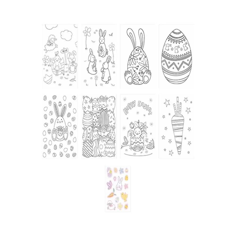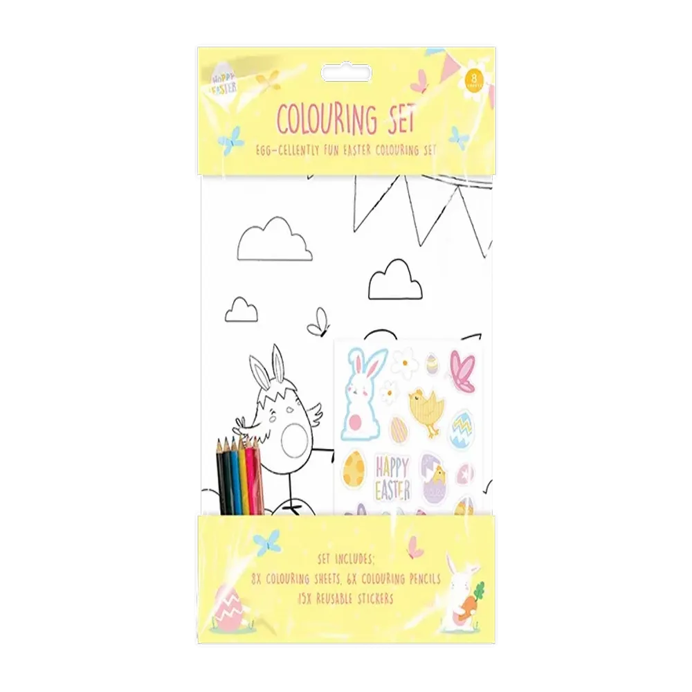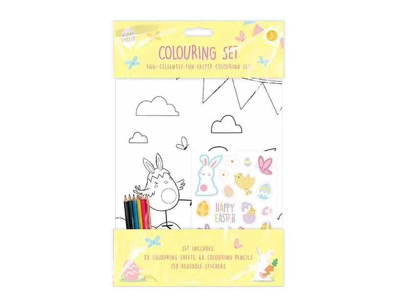 Get ready for creative Easter fun with this Easter Colouring Set! Each set includes 8 colouring sheets filled with festive designs, perfect for bringing holiday scenes to life. The set also comes with 6 vibrant colouring pencils in red, orange, brown, yellow, blue, and green, providing a range of colours to enhance your artwork. To add even more fun, the set includes 15 reusable stickers featuring Easter-themed characters and designs, allowing for endless decorating possibilities. Ideal for children, this colouring set offers a wonderful way to celebrate Easter while encouraging creativity and artistic expression. Perfect for both home and travel!