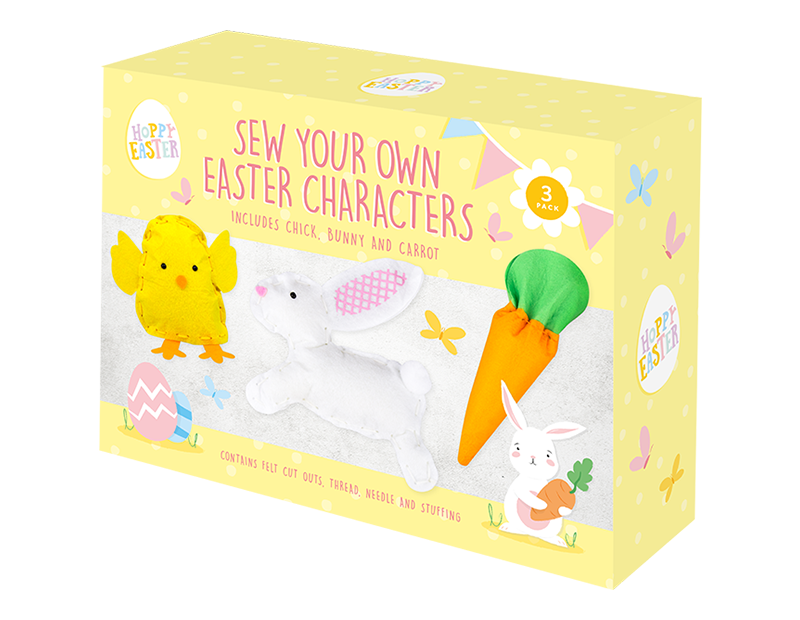 Unleash your creativity this Easter with this Pack of 3 Sew Your Own Easter Characters! Perfect for kids and crafters of all skill levels, this kit includes everything you need to create three adorable felt characters: a cheerful bunny, a fluffy chick, and a playful carrot. Each pack contains pre-cut felt pieces, colourful embroidery thread, plastic safety needles, and step-by-step instructions for a fun and safe crafting experience. These charming handmade creations make delightful Easter decorations, gifts, or keepsakes. Encourage creativity, fine motor skills, and festive fun with this engaging DIY craft kit—perfect for family bonding or solo crafting!