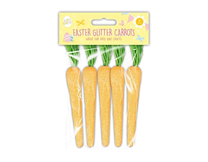 Add a touch of sparkle to your Easter crafts with this pack of 5 Easter Glitter Carrots! These vibrant, glittery carrots are perfect for bonnet making, arts and crafts, and Easter egg hunts. Their colourful, sparkling finish makes them an eye-catching addition to any project, whether you're decorating an Easter bonnet, creating festive centerpieces, or adding a playful detail to egg hunt baskets. Each carrot is designed to be lightweight and easy to attach to various craft projects, making them suitable for kids and adults alike. Bring extra charm and shine to your Easter festivities with these delightful glitter carrots!