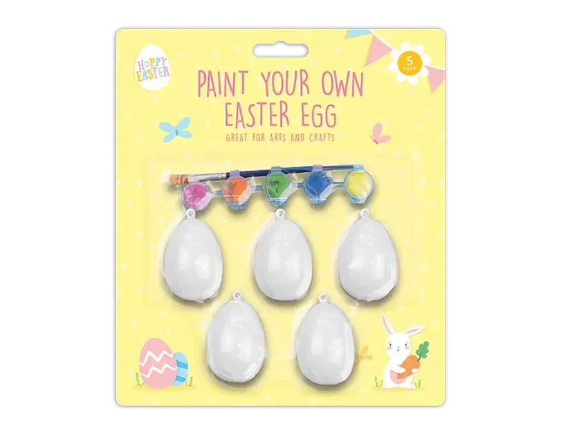 Get creative this Easter with the Paint Your Own Egg Decoration Pack! Each set includes 5 plain, ready-to-paint eggs, offering the perfect canvas for your artistic touch. With 5 vibrant paint colours—yellow, blue, green, pink, and orange—you can mix and match to create your own colourful designs. The pack also includes a paintbrush, making it easy to start your decorating right away. Ideal for kids and adults, these customizable eggs are perfect for Easter crafts, gift-making, or decorating your home. Let your imagination run wild and create festive, one-of-a-kind Easter decorations with this fun, hands-on craft set.
