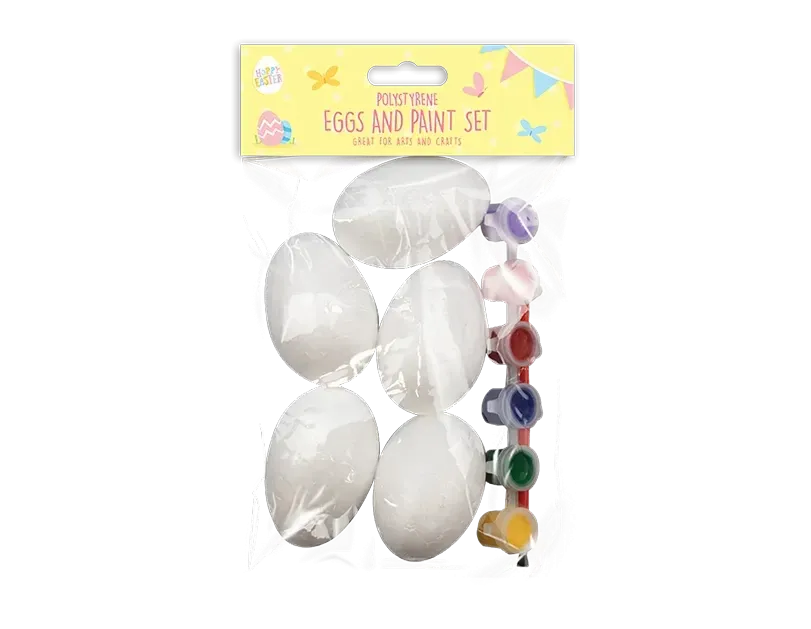 Unleash your creativity this Easter with the Polystyrene Eggs and Paint Set! This fun craft kit includes 5 polystyrene eggs, ready to be transformed into colourful works of art. The set also comes with a paintbrush and a set of 6 vibrant paint pots in red, yellow, blue, green, pink, and purple, providing all the colours you need for your designs. Ideal for both kids and adults, these eggs can be painted, decorated, and personalized to create unique Easter decorations or gifts. Perfect for craft sessions, this kit is a wonderful way to celebrate the season and add a handmade touch to your decor.