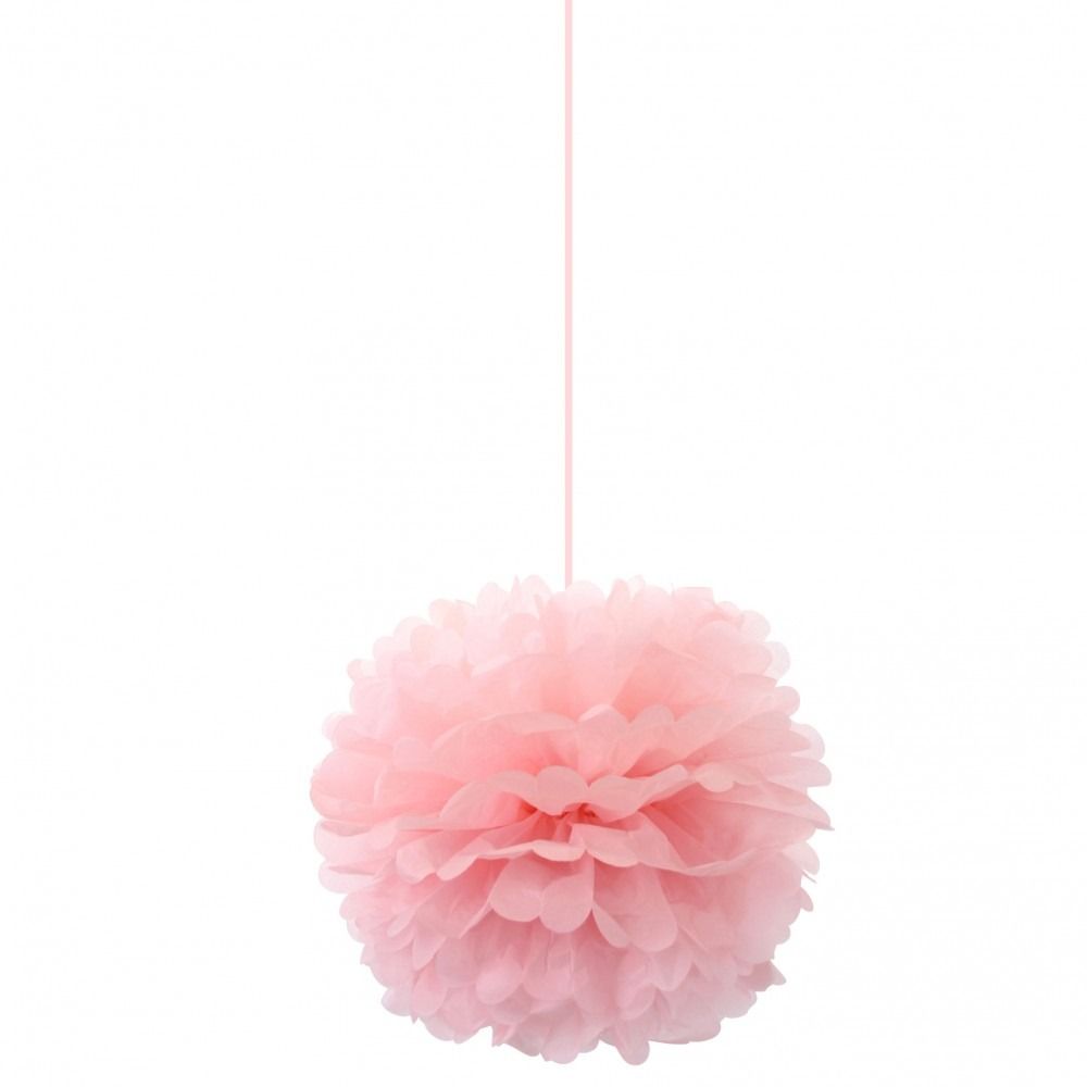 A 12 inch diameter baby pink pom pom adds an instant feature to your wedding or party decor.