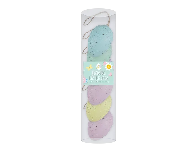 Bring the spirit of Easter into your home with this charming pack of 6 hanging Easter eggs. Each egg showcases a delightful speckled design in an assortment of soft pastel colours, adding a touch of elegance to your seasonal decor. Measuring L6cm x 4.5cm DIA, these eggs are lightweight and easy to display. Complete with an attached white ribbon, they’re perfect for hanging on branches, garlands, or Easter trees. Their versatile design makes them ideal for creating a festive atmosphere in any room. Add these stylish decorations to your collection for a simple yet beautiful way to celebrate the season.