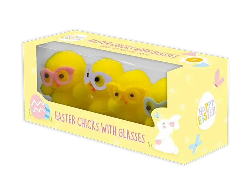 Add a fun and quirky touch to your Easter decor with this pack of 4 Easter Chicks with Glasses! Each chick is designed with adorable oversized glasses, giving them a playful, whimsical look that’s sure to bring smiles. Perfect for Easter baskets, craft projects, or table centerpieces, these charming chicks add a bit of character to any setting. Made from durable materials, they’re ideal for both kids and adults to enjoy. Whether you're decorating for Easter or just looking for a lighthearted touch to your spring celebrations, these cheerful chicks with glasses are a delightful way to celebrate the season!