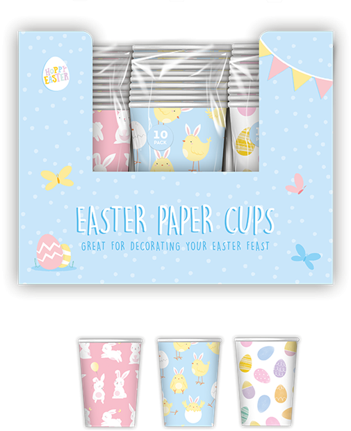 Add a splash of festive charm to your Easter party with our Pack of 10 Easter Printed Paper Cups (Assorted Design). These cups are adorned with delightful Easter-themed prints, from adorable bunnies to vibrant eggs, creating a whimsical touch to your tableware. Crafted for both style and practicality, these cups are perfect for serving refreshing drinks at your celebration. The assorted designs bring a playful and joyful vibe to your party ambiance. With durability and convenience in mind, these cups make cleanup a breeze, ensuring a delightful and stress-free Easter gathering. Elevate your table setting with these Easter Printed Paper Cups for a memorable celebration.