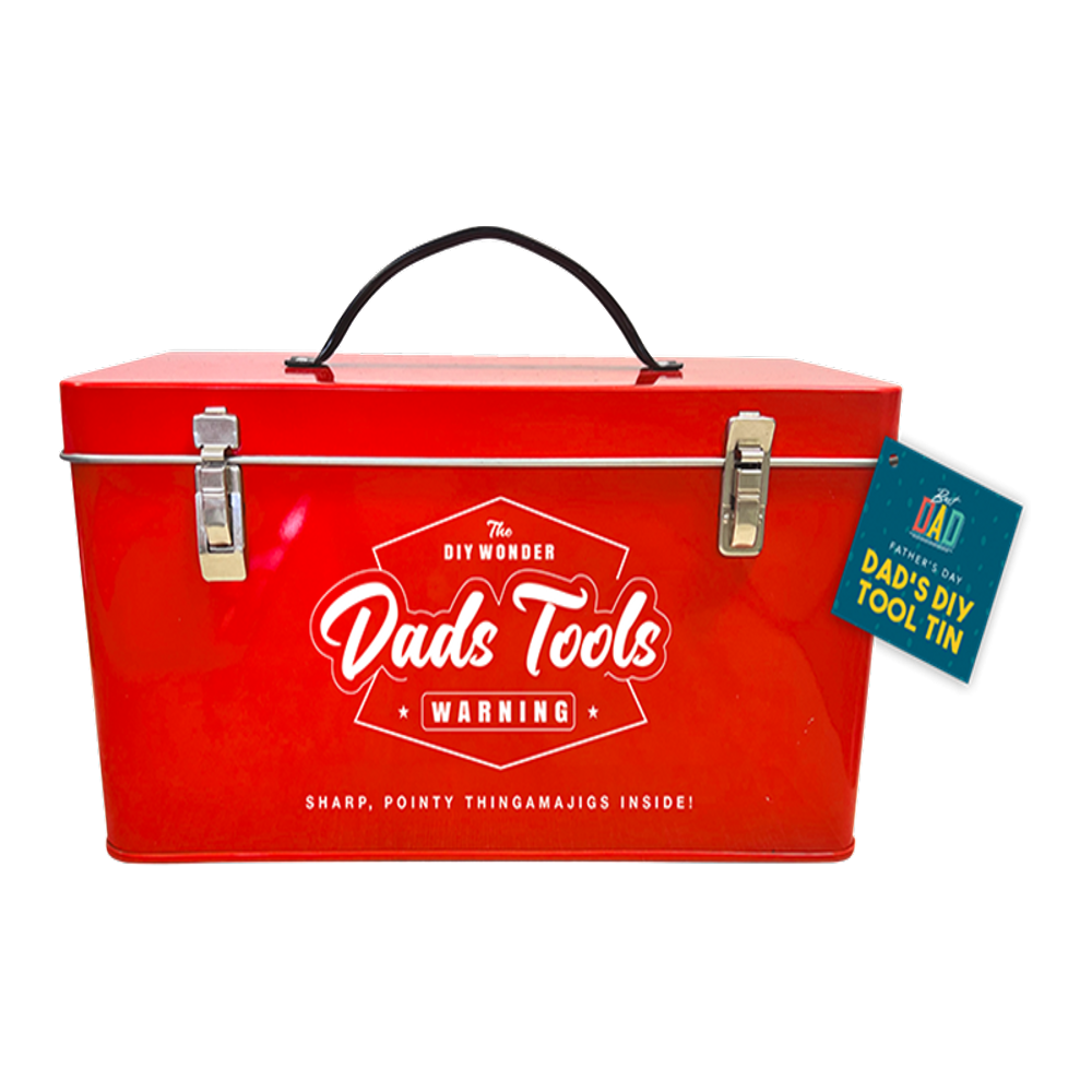 This Father's Day, give Dad the ultimate gift of DIY prowess with our Dad's DIY Tools Tin. Crafted to impress, this sturdy tool box can be packed with essential tools and gadgets to fuel his projects and passion. The sleek tin design adds a touch of style to his workshop while keeping everything organized and easily accessible. Whether he's a seasoned handyman or a DIY enthusiast, this gift is sure to elevate his Father's Day experience and inspire countless new projects. Celebrate Dad's skills and creativity with our Dad's DIY Tools Tin.