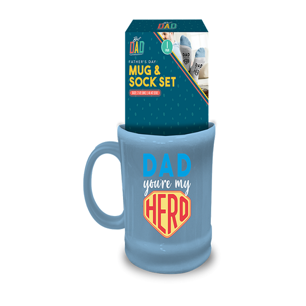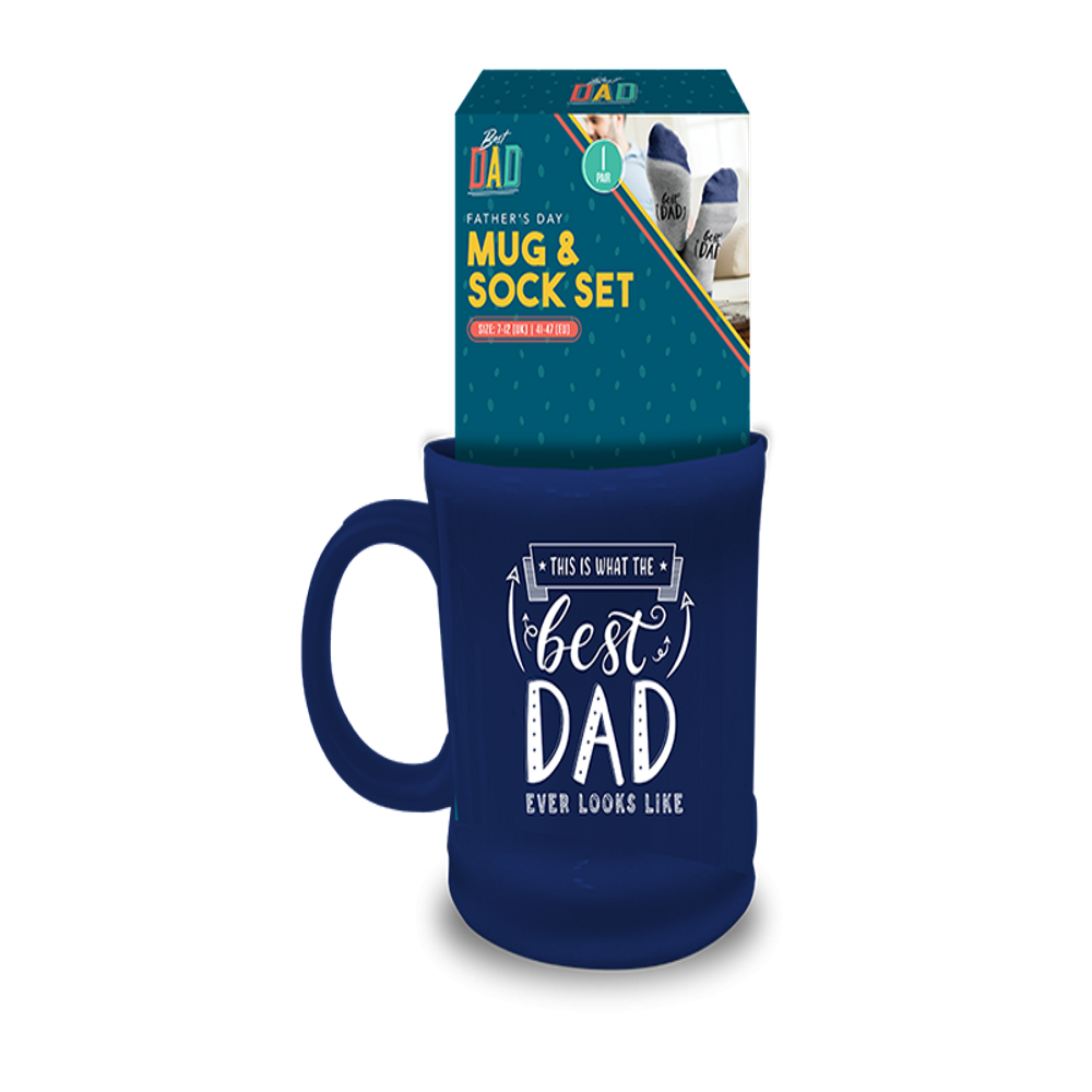 Celebrate Father's Day in style with our charming Father's Day Mug and Sock Set, a thoughtful gift sure to warm his heart. This delightful set includes a sturdy ceramic mug adorned with a loving Father's Day design, perfect for his morning coffee or evening tea. Accompanied by a cozy pair of socks featuring a heartfelt message, this set combines practicality with sentimentality. Whether he's lounging at home or heading out for the day, these socks will keep him comfortable and stylish. Give Dad the gift of relaxation and appreciation with our Father's Day Mug and Sock Set.