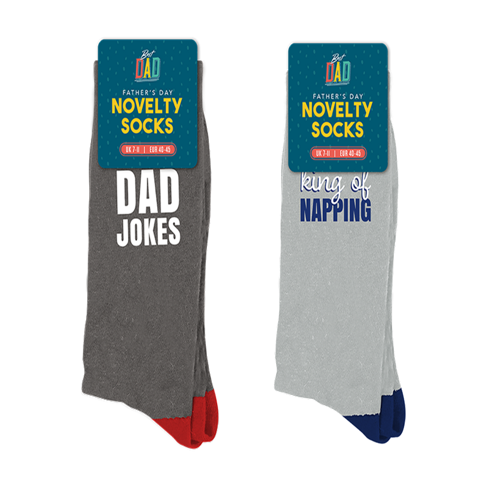 This Father's Day, add a touch of fun and personality to Dad's wardrobe with our Novelty Socks, the perfect gift to showcase his unique style. Crafted with quality materials and vibrant designs, these socks are both comfortable and eye-catching. Whether adorned with playful patterns or humorous messages, they're sure to bring a smile to Dad's face every time he wears them. Perfect for lounging at home or adding a pop of color to his office attire, these socks are a delightful expression of appreciation and love. Celebrate Father's Day with a gift that combines comfort, style, and a touch of whimsy