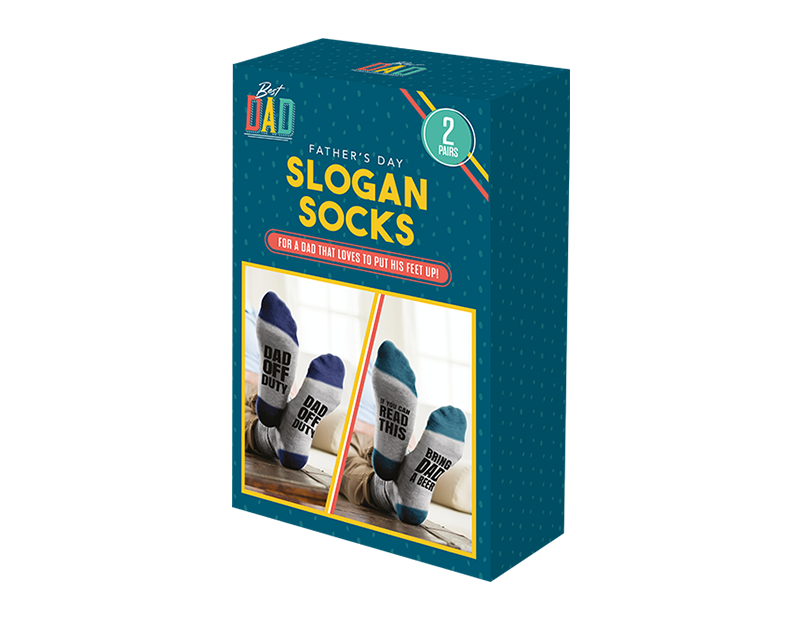 Make Dad's day extra special with our Father's Day Slogan Socks, a delightful 2-pack that combines comfort and style with heartfelt sentiments. Crafted with care and creativity, these socks feature charming slogans that celebrate the spirit of fatherhood. Whether it's "Dad Off Duty" or "If You Can Read This Bring Dad a Beer", these socks are sure to bring a smile to his face every time he wears them. With their cozy fabric and thoughtful messages, they make the perfect gift for Father's Day, adding a touch of warmth and personality to his wardrobe. Give the gift of comfort and love with these Father's Day Slogan Socks.