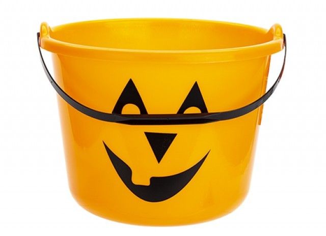 Perfect for trick or treating, this orange plastic candy bucket is perfect for filling with sweets!!