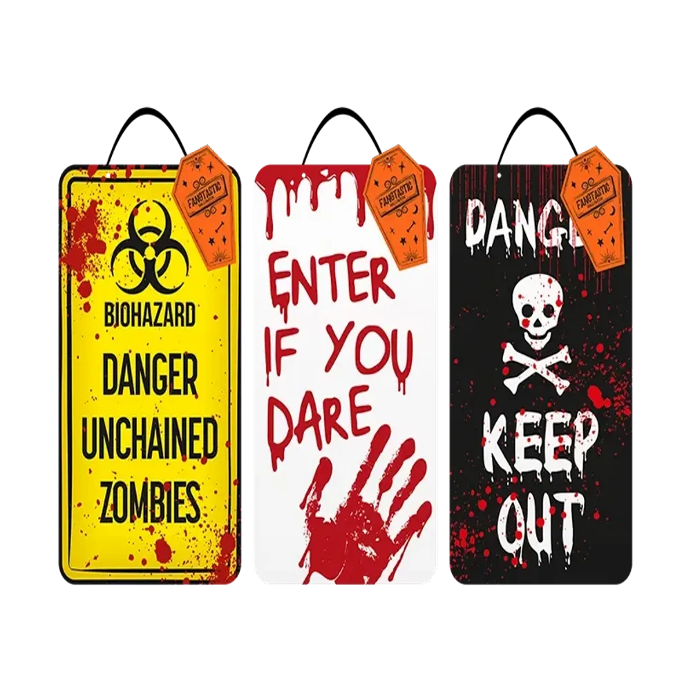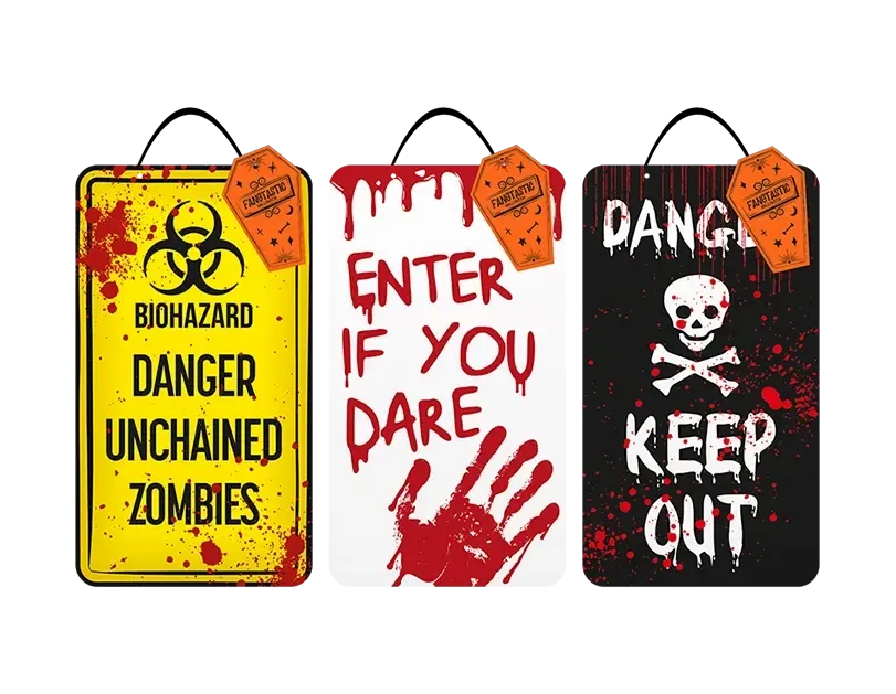 Crafted with eerie details, these plaques are perfect for home or office decoration. Each plaque features a unique Halloween-themed warning, adding an extra layer of fright to your festivities.
