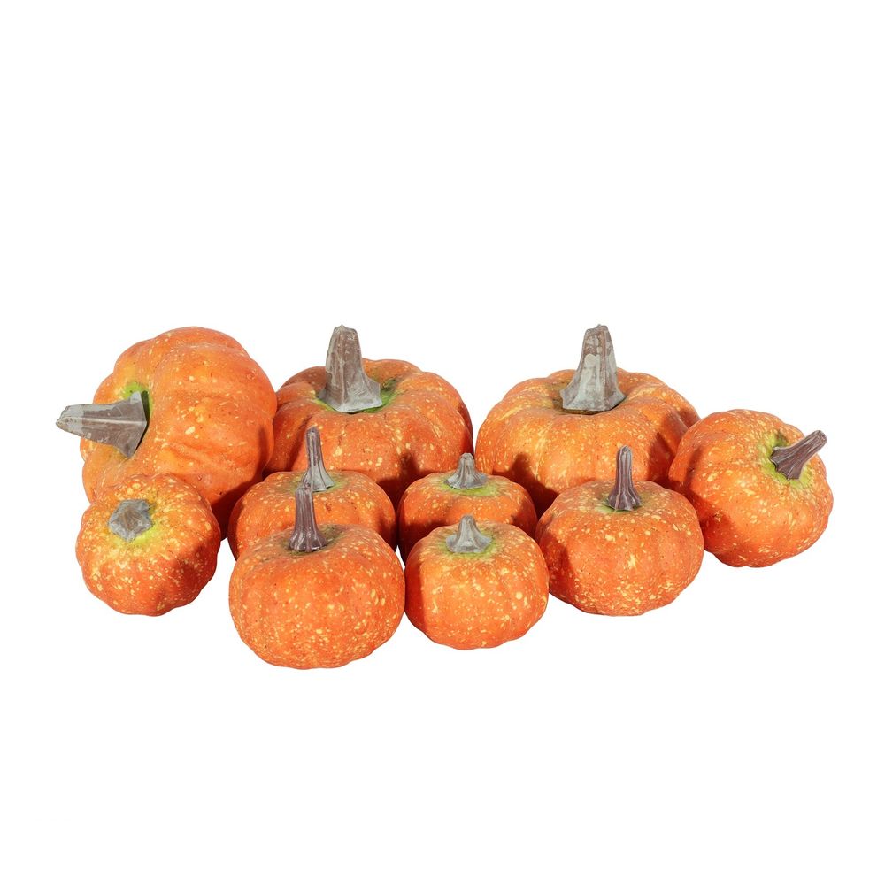 This pack of 10 versatile pumpkins is perfect for Halloween decorations or creating a cosy autumn atmosphere. The vibrant orange hue offers a touch of festive charm to any setting. With a mix of sizes, these pumpkins allow for creative display options; they can be used as standalone pieces or grouped together for a bountiful look.