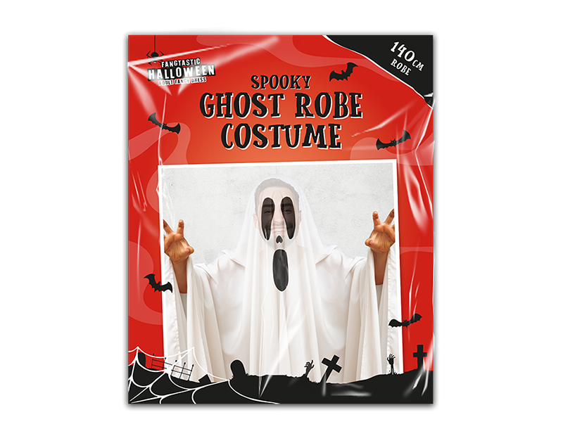 Transform into a spectral apparition with our Adults Ghost Robe Costume, perfect for your Halloween fancy dress! This eerie ensemble features a flowing white robe with tattered edges, creating a hauntingly realistic ghostly appearance. The hooded design adds an extra layer of mystery, making you the spookiest spirit at any Halloween event. Made from lightweight, comfortable fabric, this costume allows for easy movement, whether you're haunting a party or trick-or-treating. Ideal for Halloween celebrations, themed parties, or ghostly gatherings, our Ghost Robe Costume is the ultimate choice for adults looking to embrace the eerie spirit of the season.