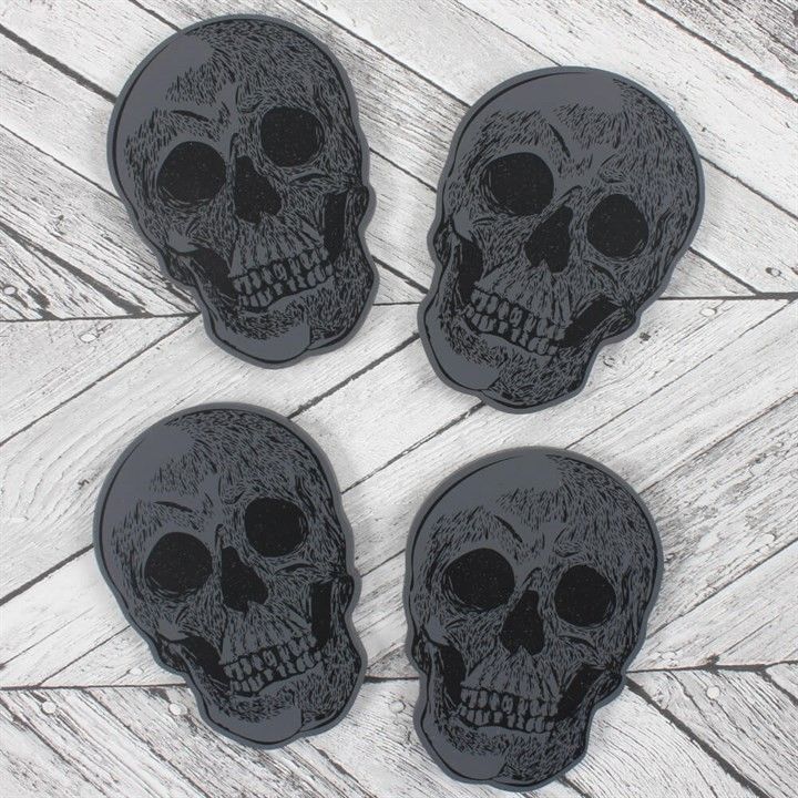 Make a statement in your home with this set of 4 skull coasters.