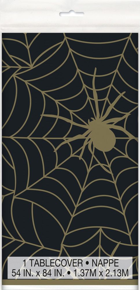 Black and Gold Spider Web Plastic Tablecover (54 x 84 Inch)