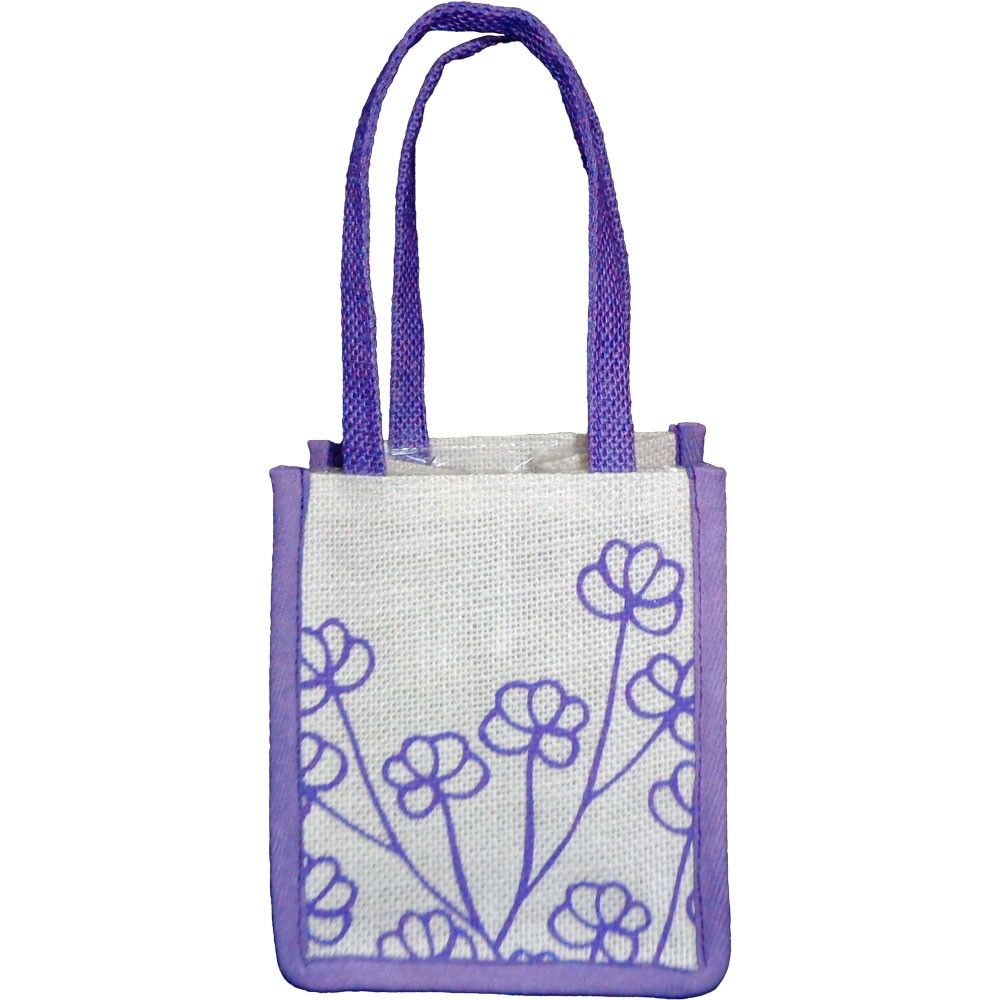 Light coloured jute plant bag featuring a modern, simple line drawing of flowers and stems in lilac.
