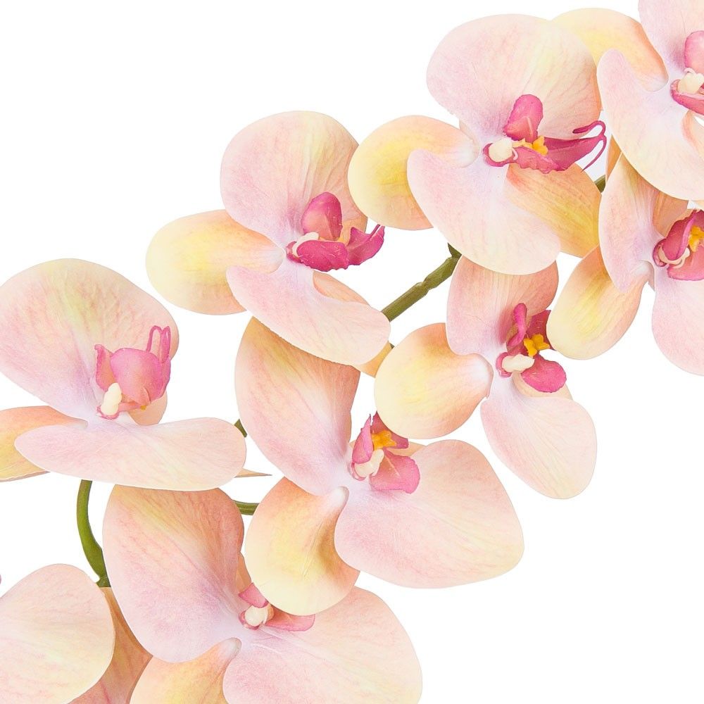 A premium, hyper realistic Phalaenopsis orchid stem featuring 11 soft pink & yellow flowers alongside 4 buds.