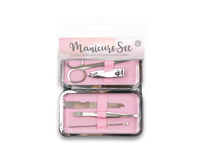 Elevate her self-care routine with our exquisite 5-Piece Manicure Set, a perfect Mother's Day gift. Crafted for precision and style, this set includes 5 manicure items including a nail file, tweezers, cuticle pusher, scissors and nail clippers. The sleek and compact iridescent case with solid print letting that reads 'Good vibes only' makes it ideal for travel or on-the-go touch-ups. Showcasing a thoughtful balance of functionality and elegance, this set ensures she'll experience a spa-like pampering in the comfort of her own space. Give the gift of beautifully groomed nails and a touch of luxury with this Manicure Set — an ideal way to express appreciation for the special women in your life.