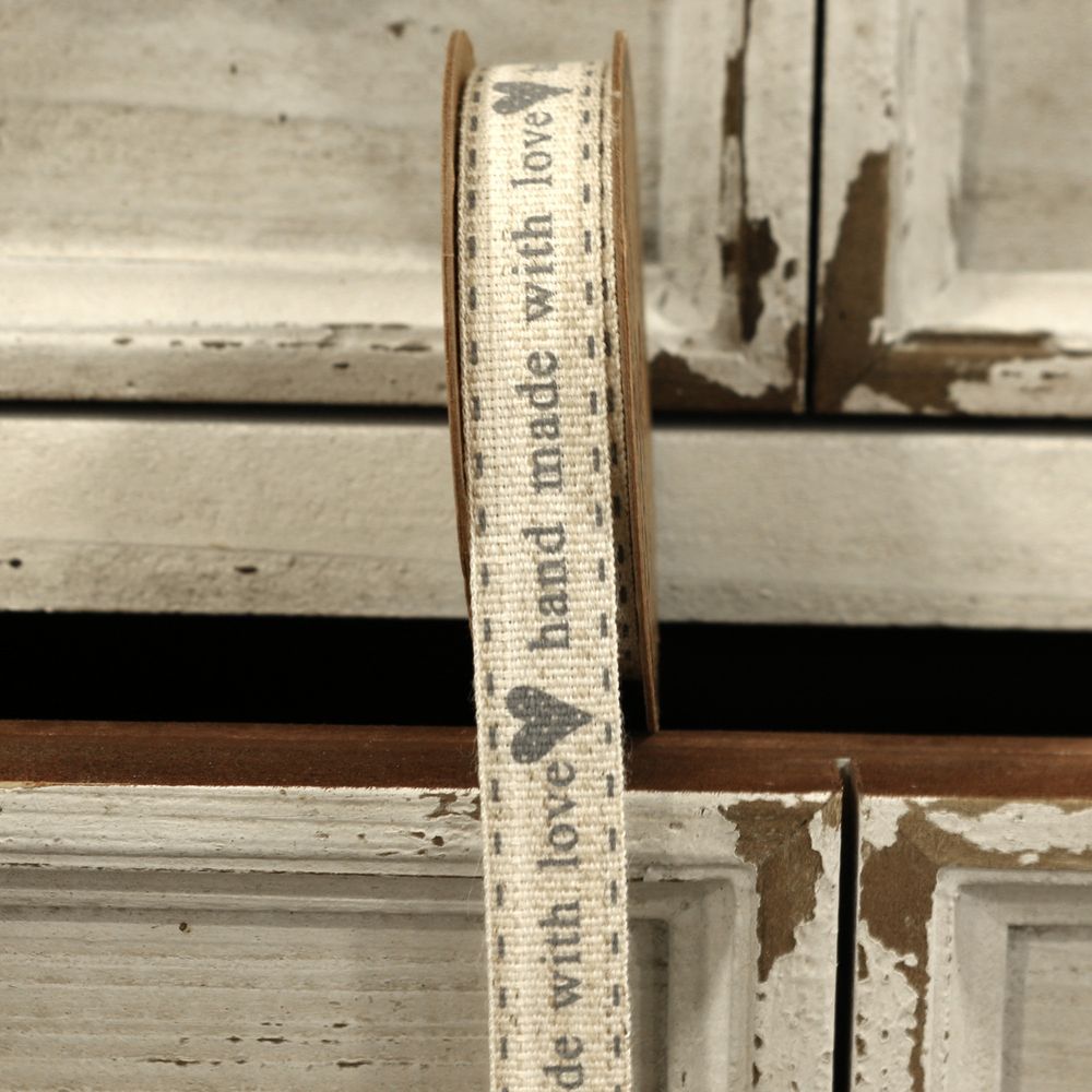 'Handmade with Love' Grey Linen Ribbon 15mm