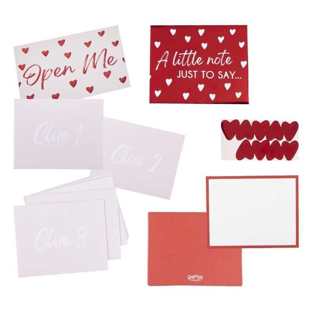 Have fun with your special someone this year with our fun Treasure Hunt Kit . This kit includes 10 envelopes ,clue envelopes and 1 with "just a note to say" envelope.