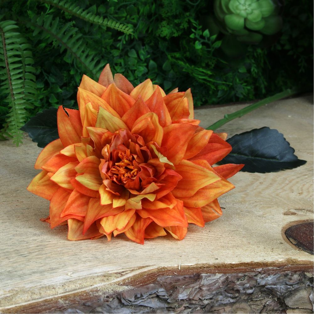 Create a lovely autumnal display or arrangment with this highly realistic Glamis Dahila spray in Orange.