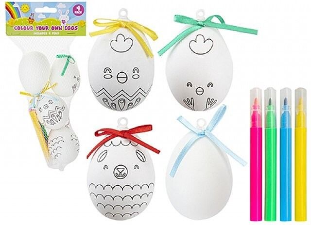 Includes 4 eggs ready to decorate.