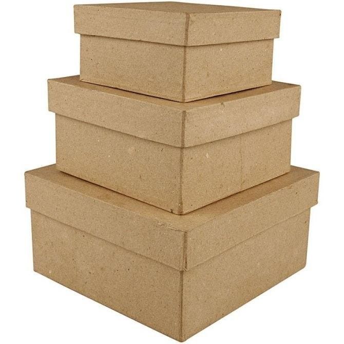 Set of three square cardboard boxes, ideal for papier-mache, painting and decorating in a variety of different styles.