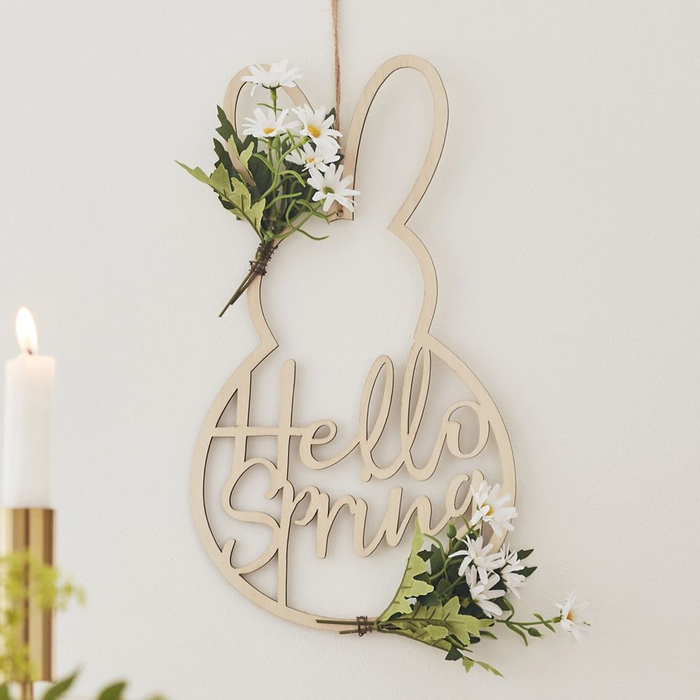 This wooden Easter wreath decoration is perfect for your seasonal display. Hang at your front door or entrance to create an inviting welcome wreath for your guests.