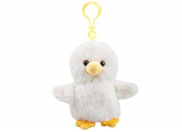 Plush Chick with yellow beak and feet with clip on attachment. Soft white material.