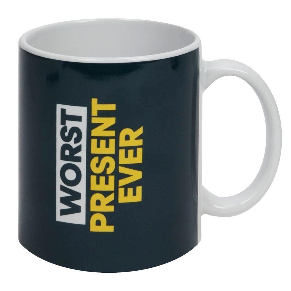 Give the sarcastic joker in your life the perfect cuppa companion with this WORST PRESENT EVER ceramic mug. From the Ministry of Humour by HARVEY MAKIN® - putting the tongue into giftware's cheek Like its bold yellow title - this grey mug is a no nonsense gift for a no nonsense guy or girl with a wicked sense of humour. Suitable for dishwasher and microwave. The Ministry of Humour has one objective- to help bring a smile to the grumpy old git's face. Tongue in cheek slogans and bold but blokey colours on a collection of mugs, socks, stationery and glassware provide the perfect collection of novelty giftware for the man who doesn't take himself too seriously.