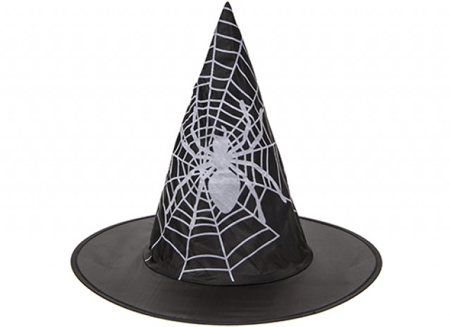 Complete your witches costume with this spider web design hat. This hat measures 14 inches in diameter and 11 inches in height.