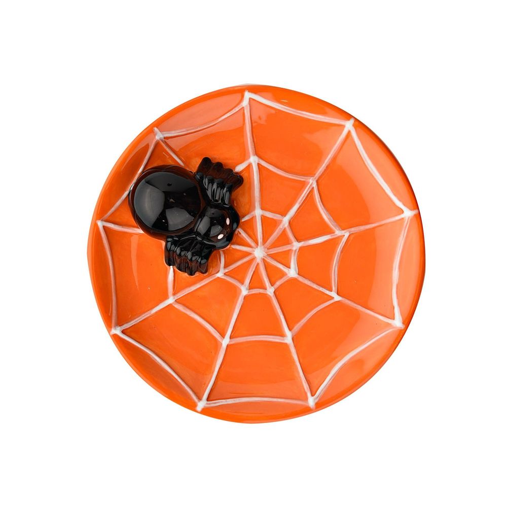 Do you love everything spooky? Then this Spider Web Trinket Plates are perfect for you! This orange trinket plate feature a spider web design, making them perfect for Halloween. They're also great for adding a bit of spookiness to your home décor. Use them to display Halloween candy, small trinkets, or even as part of a spooky table setting.