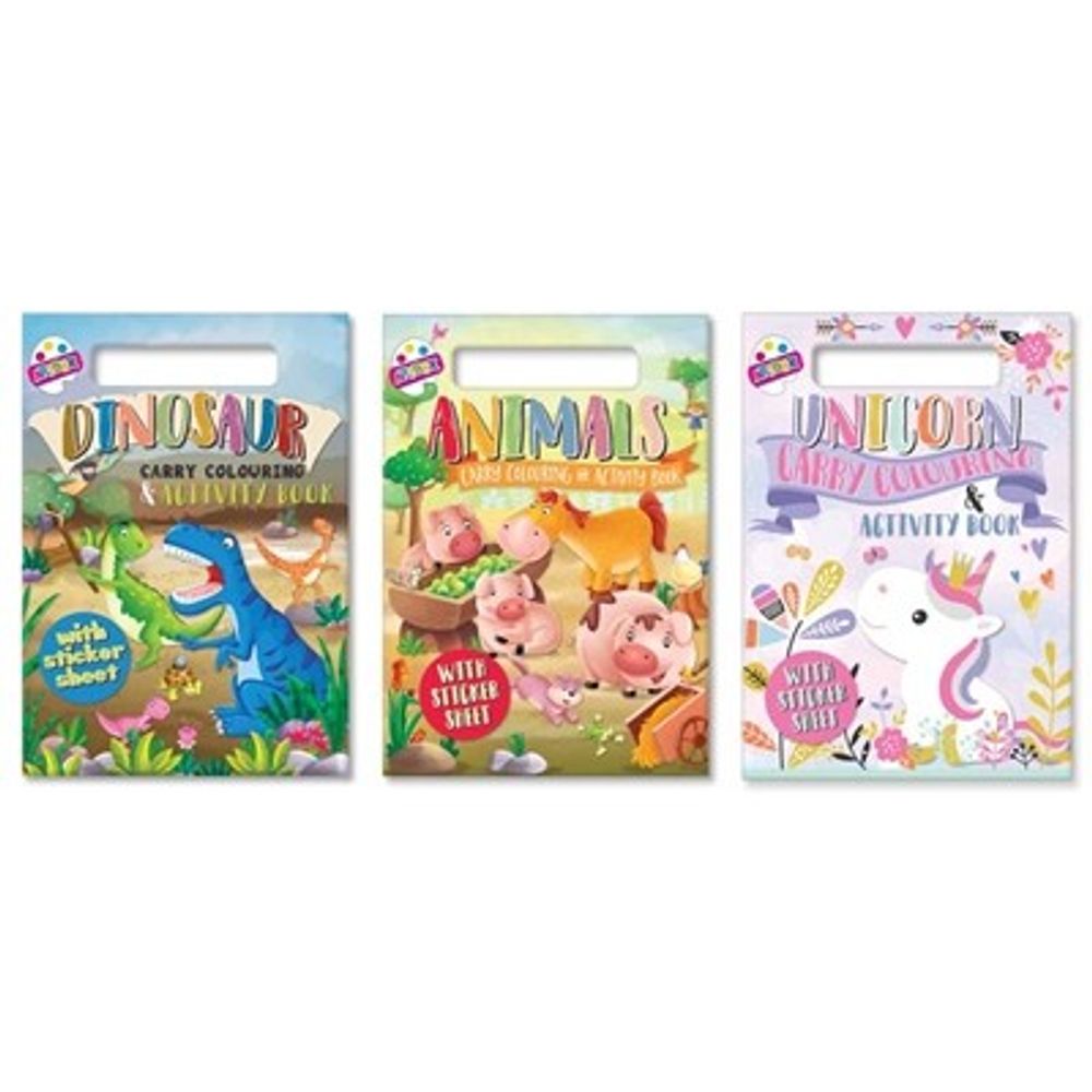 Keep kids entertained wherever they go with this A4 Carry Colouring and Activity Pad! Available in three fun and vibrant designs—Dinosaur, Animals, and Unicorn—each pad is packed with colouring pages, puzzles, and engaging activities to spark creativity and learning. The convenient carry handle makes it easy for little hands to take their fun on the go, whether it's a car ride, holiday, or day out. Each pad also includes a colourful sticker sheet for added excitement and creative play. With hours of screen-free entertainment inside, it’s the perfect travel companion for imaginative kids aged 3 and up!
