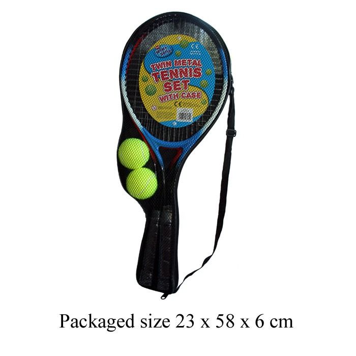 This set of 2 metal tennis rackets are perfect for a game on the court or in the park over a casual picnic. Comes complete with a handy carry case and ball.